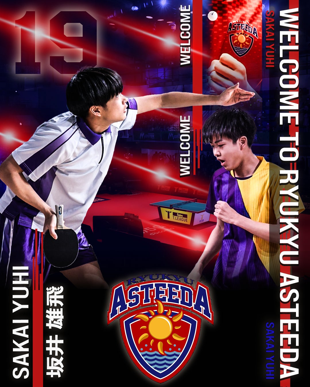 8thシーズン王座奪還に向けて、沖縄県出身!若き才能で躍動している坂井選手との契約を締結いたしましたことを大変嬉しく思います。幼少期からその才能を光らせ、全国大会でも活躍するなど、将来の卓球界に必要不可欠な選手だと信じています!今シーズン、坂井選手が卓球界、そして地元沖縄県を盛り上げられるように全力でサポートしてまいります。