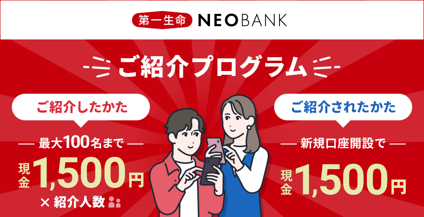 第一生命NEOBANK、「ご紹介プログラム」開始のお知らせ