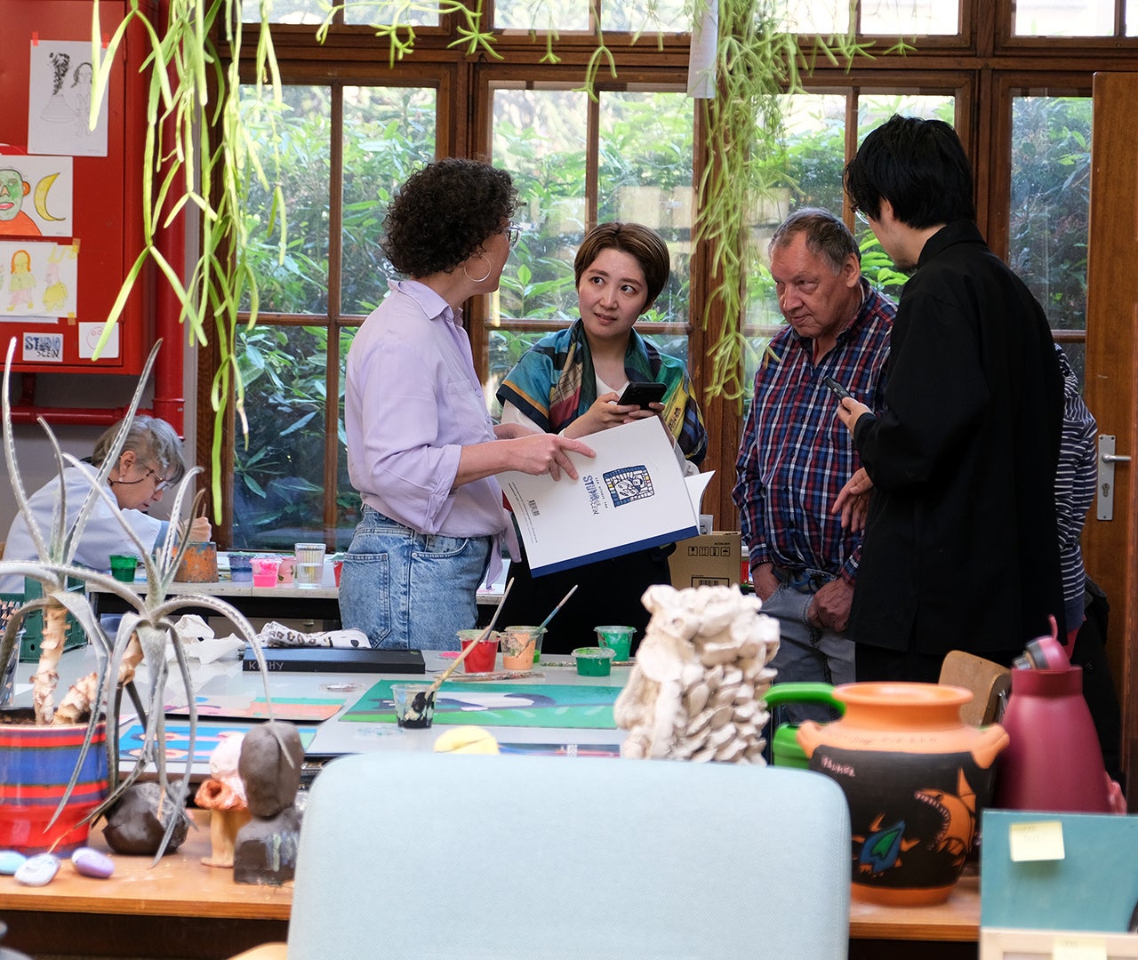 「STUDIO BORGERSTEIN」は、2009年に設立されたベルギーのアートスタジオです。障害福祉事業を提供する企業「Borgerstein vzw」のもと運営されており、現在、障害のある23名のアーティストが在籍しています。ヘラルボニーは、2024年6月に初めて訪問しました。自然が豊かで広々とした敷地の中で、のびのびとアート制作に取り組むアーティストの皆さんや福祉施設の担当者の方々との対話を経て、互いの理念に共感し合い、このたびパートナーシップの締結に至りました。