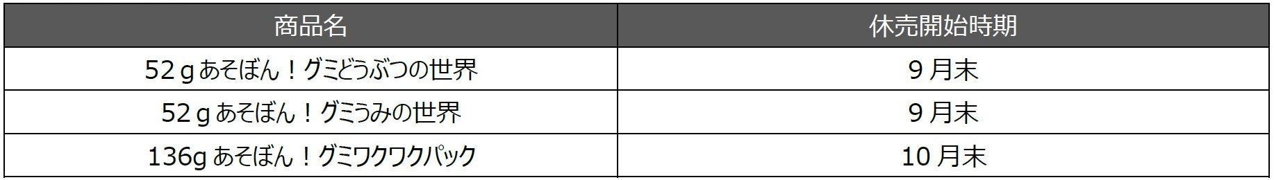 下記商品は休売となりますが、「あそぼん!」ブランドの派生品を随時発売するほか、あそぼん!公式サイト(https://kanro.jp/pages/asobon)のオリジナルコンテンツは引き続き更新していきます。
