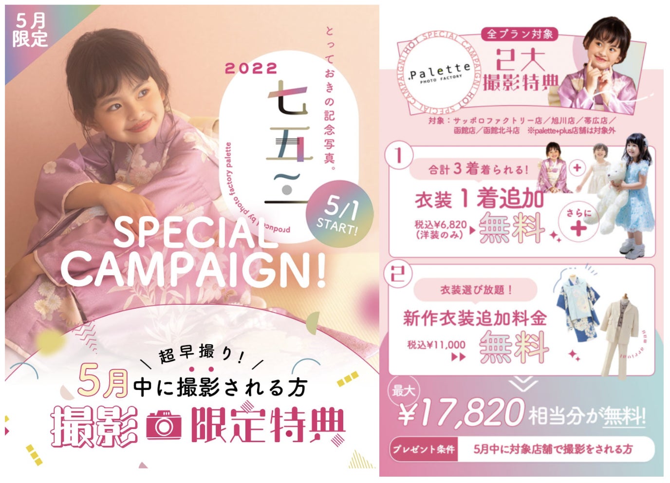 写真工房ぱれっとから七五三の新作ビジュアルが発表!5月の超早撮りが、超オトク!