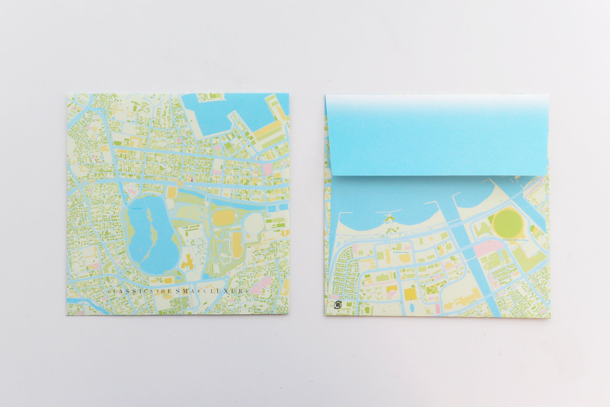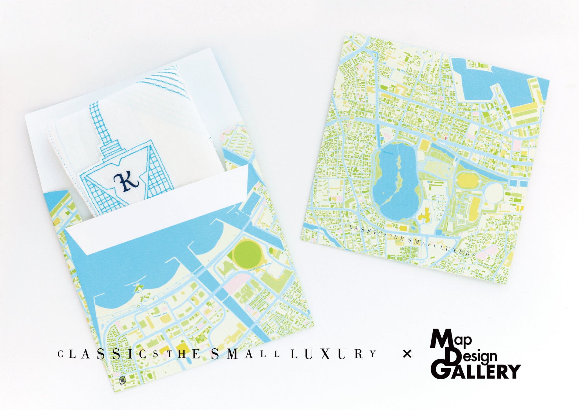 ハンカチーフ専門店【CLASSICS the Small Luxury】ゼンリンの地図データを用いた、福岡大濠公園店限定『地図柄封筒』登場!