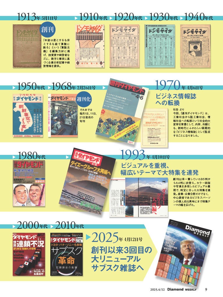 創刊111周年の歴史を持ち、31年間連続で市販売り上げNo.1を堅持してきたビジネス週刊誌 『週刊ダイヤモンド』(発行:株式会社ダイヤモンド社) は、2025年4月7日発売号より定期購読を前提とした「サブスクリプション(継続課金)モデル」として、新たに生まれ変わります。
