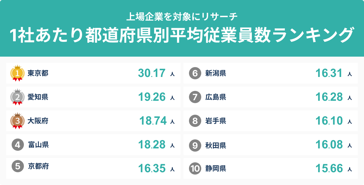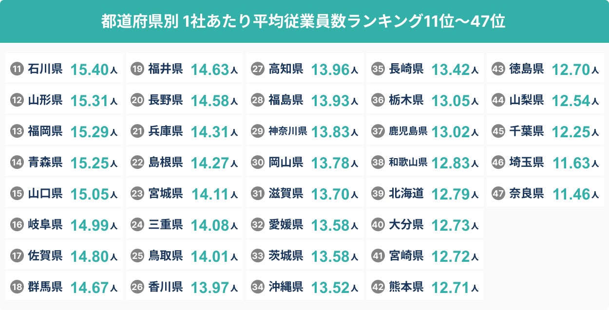1社あたりの従業員数が多い都道府県はどこ!?全47都道府県別、平均従業員数ランキングを発表!/SalesNow DBレポート