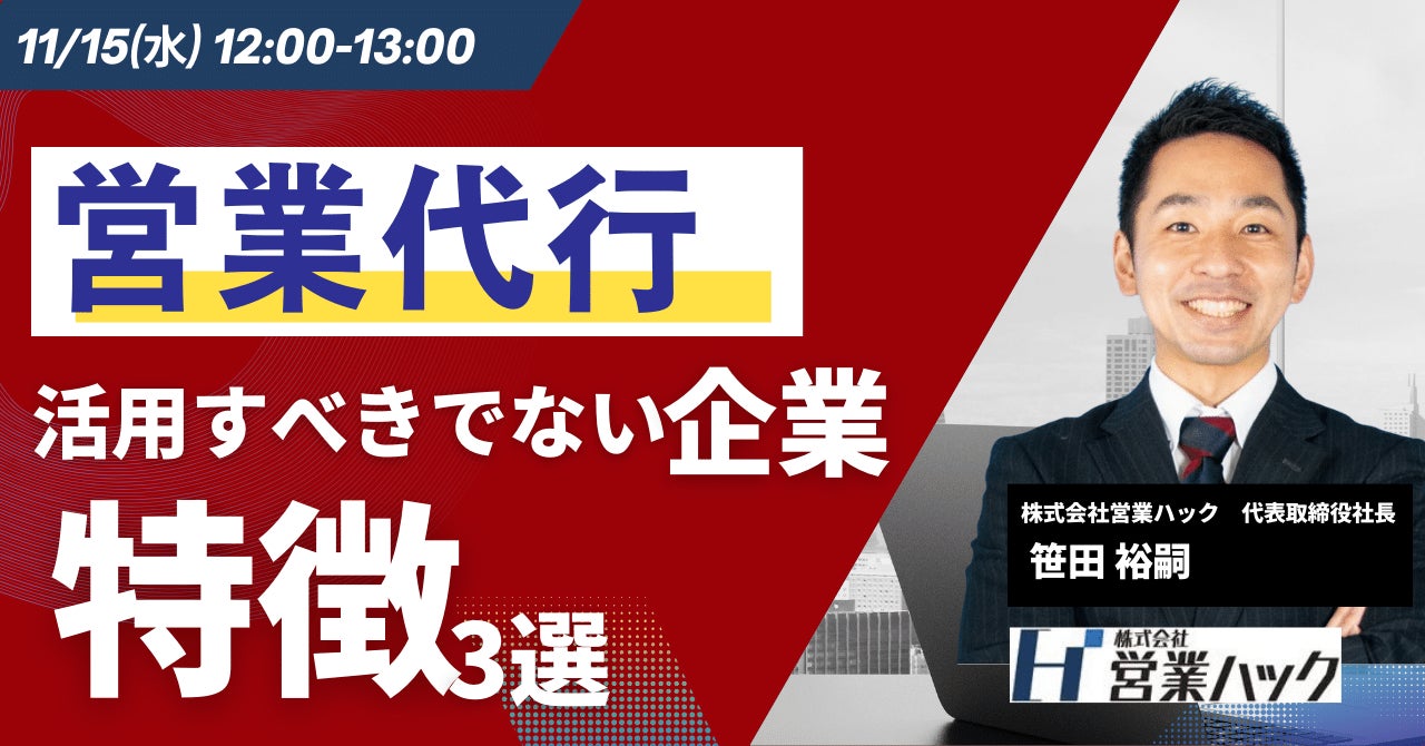 営業代行が失敗する企業とは?営業代行の使い方について徹底解説します《11/15(水)12:00~無料オンラインセミナー》