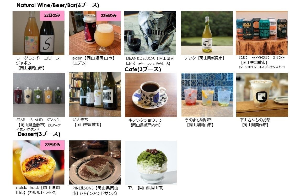 出店店舗(2日間):全53ブース(Bakery29ブース、Natural Wine/Beer/Bar8ブース、Cafe3ブース、Restaurant5ブース、Dessert3ブース、LIFESTYLE5ブース)
