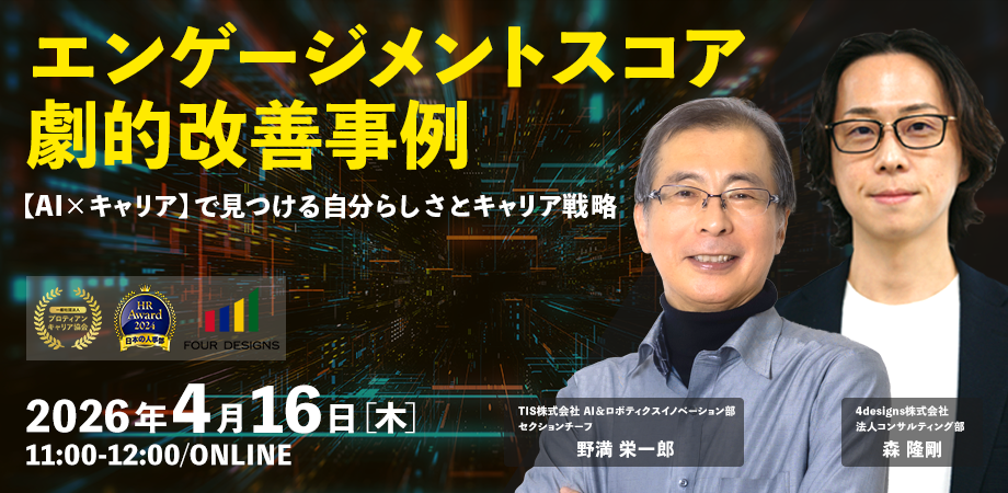 このたび、2026年4月16日(木)に、無料オンラインセミナー「エンゲージメントスコア劇的改善事例 〜【AI×キャリア】で見つける自分らしさとキャリア戦略〜」を開催いたします。