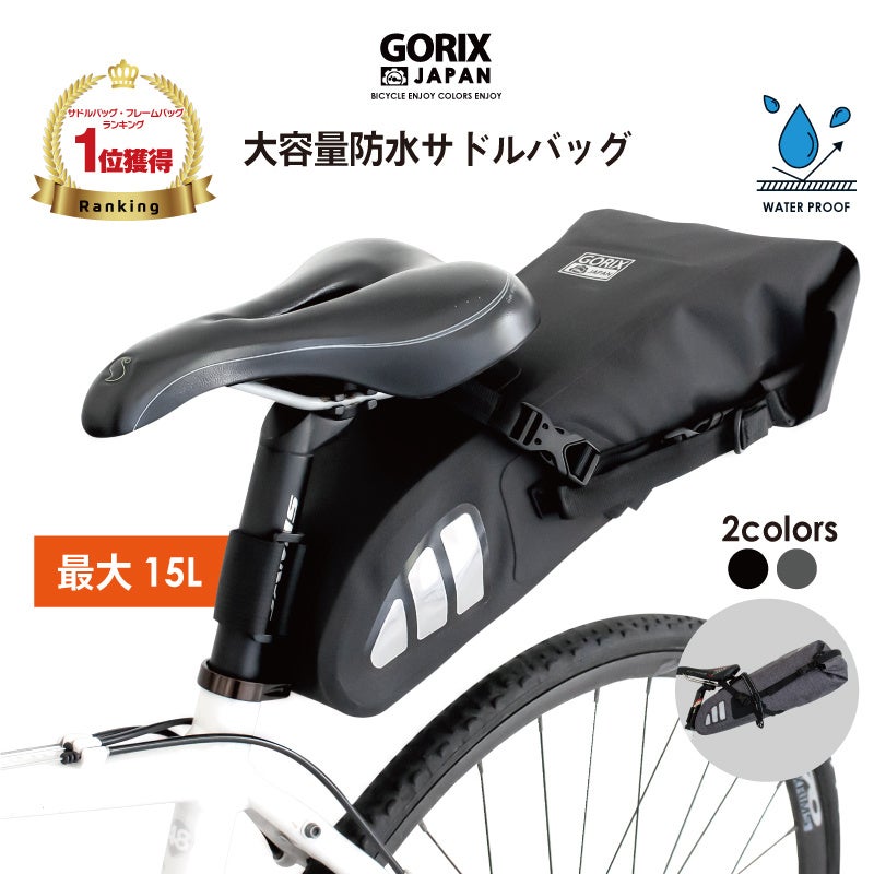 【累計2,500個突破】【たっぷり大容量15L】自転車パーツブランド「GORIX」の防水サドルバッグ(GO-B7)が累計個数2,500個(2022/10/31付)を突破!!