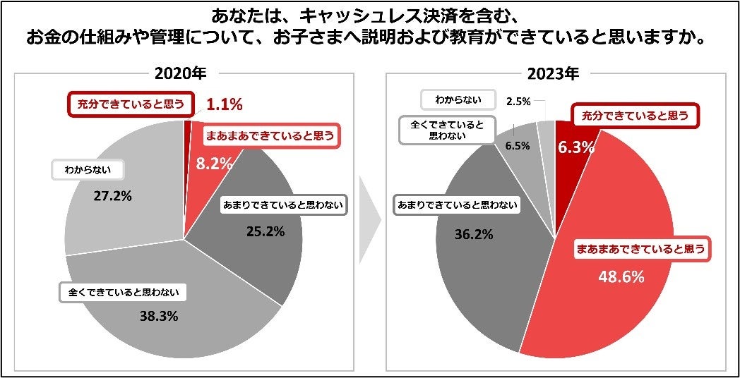 本講座の開催に先立ち、楽天ペイメントでは、「子どものキャッシュレス教育に関する独自調査」を2023年1月18日(水)にインターネットで実施しました。本調査は2020年にも実施しており、この3年間の回答の推移とともに調査したものです。その結果、キャッシュレス教育に対する意識の移り変わりが分かってきました。