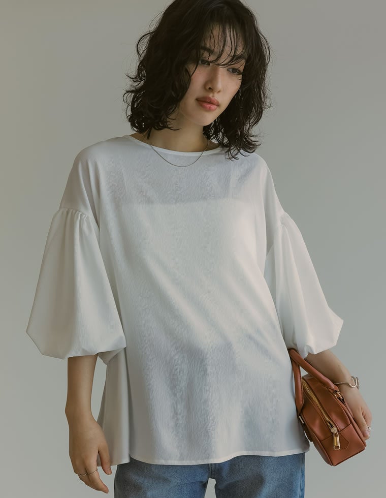 商品名:クレープ七分袖バルーンスリーブブラウス