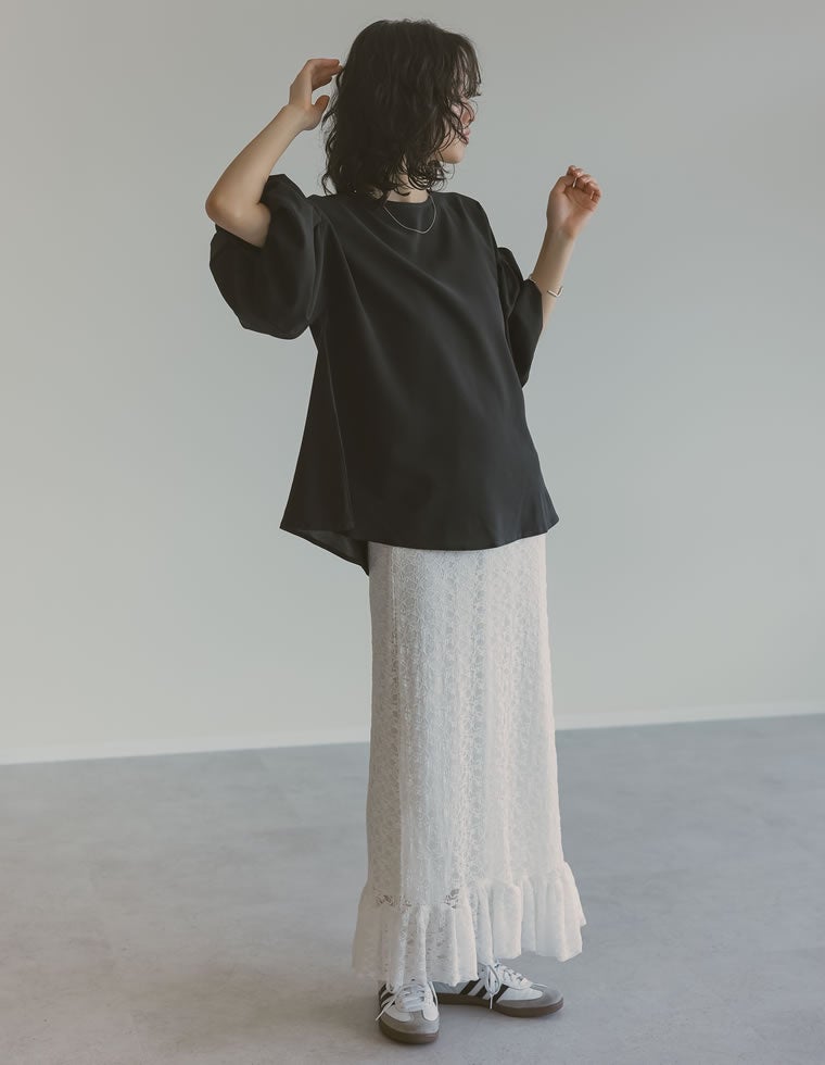 上品で大人フェミニンなバルーンスリーブブラウス