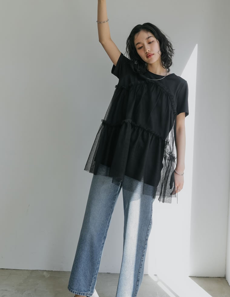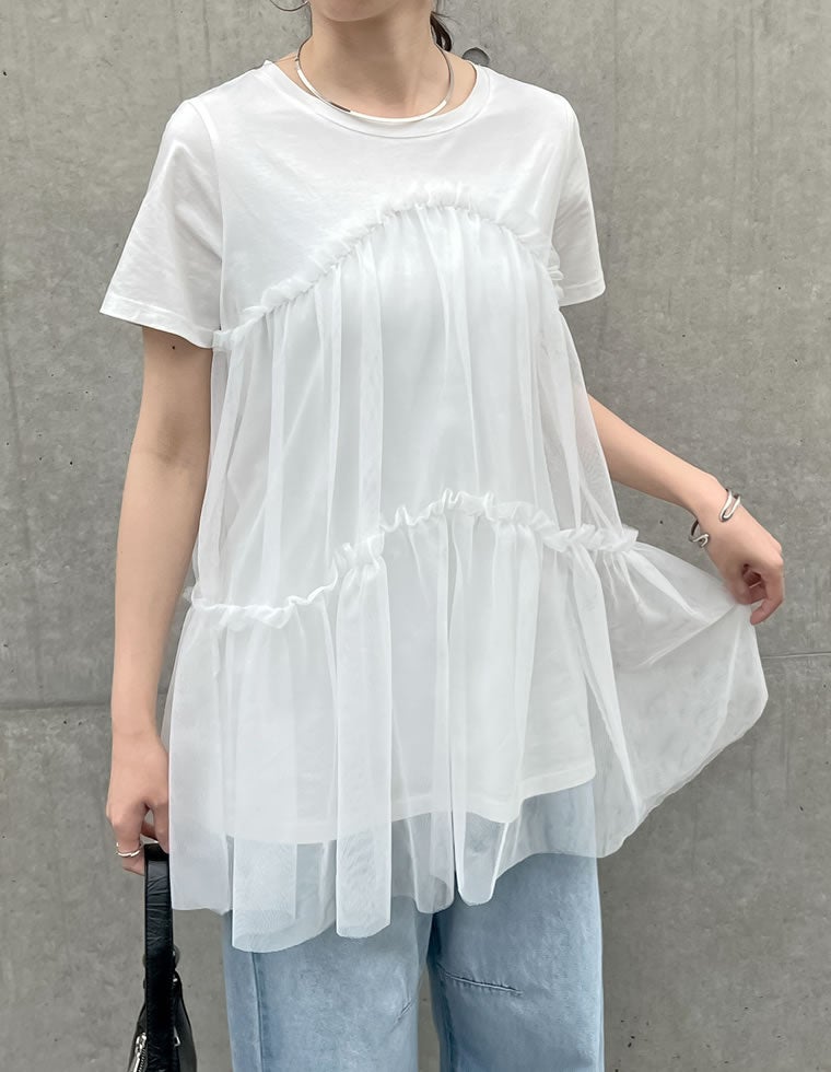トレンドスタイルが叶うチュールチュニックTシャツ