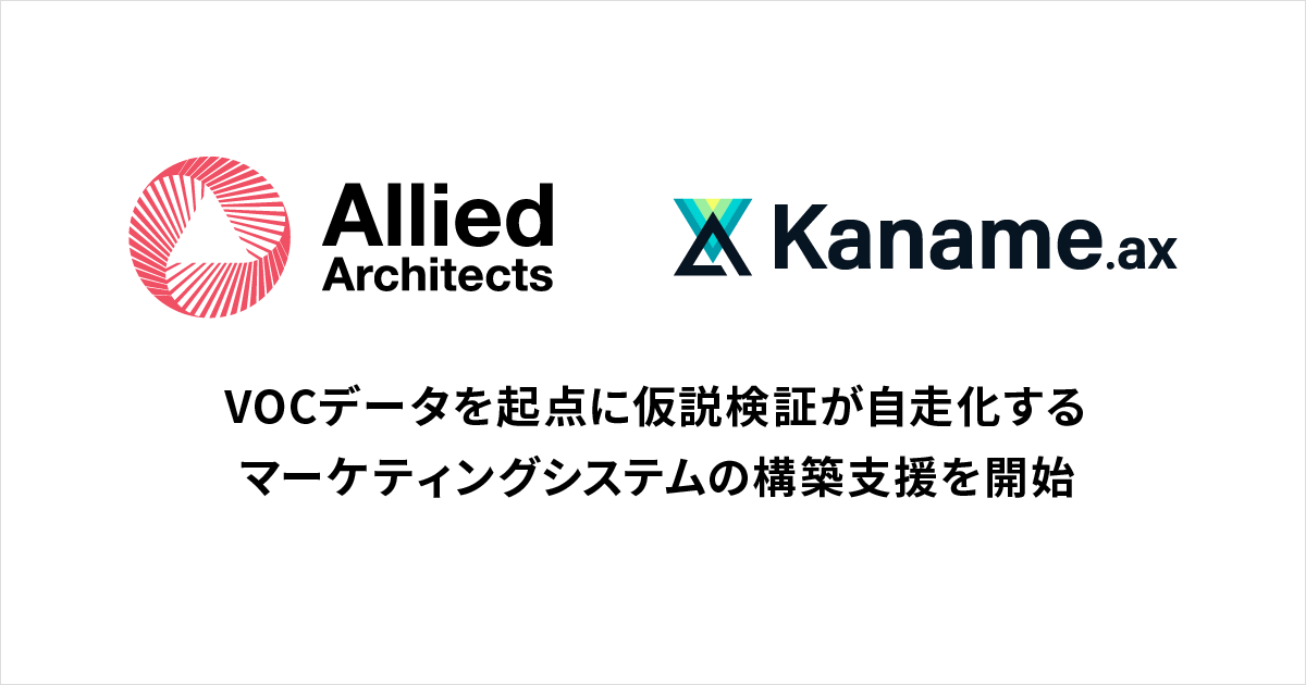 データとクリエイティブの力でマーケティングコミュニケーションを設計し、企業のマーケティングAXを支援するアライドアーキテクツ株式会社(本社:東京都渋谷区、取締役社長:村岡弥真人、証券コード:6081、以下「当社」)は、VOCデータを起点に、商品企画から販売・プロモーションに至るまでの一連のマーケティング活動における仮説検証サイクルが継続的に回る仕組みの構築支援を開始いたします。