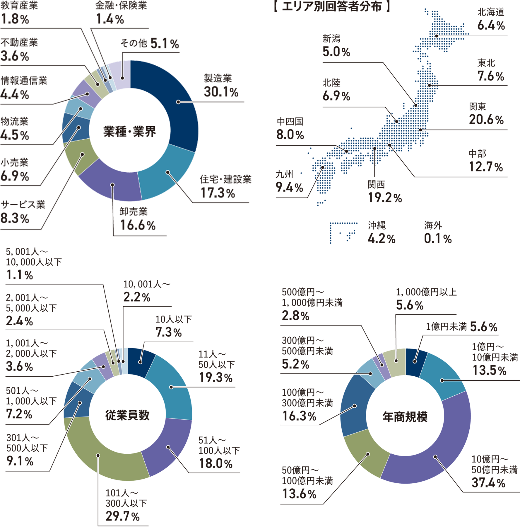 ※本調査では、アンケートにご回答いただいた企業において、従業員規模が2,001人以上の企業を大企業、100人超~2,000人以下の企業を中堅企業、100人以下の企業を中小企業として分類し、分析を行いました。