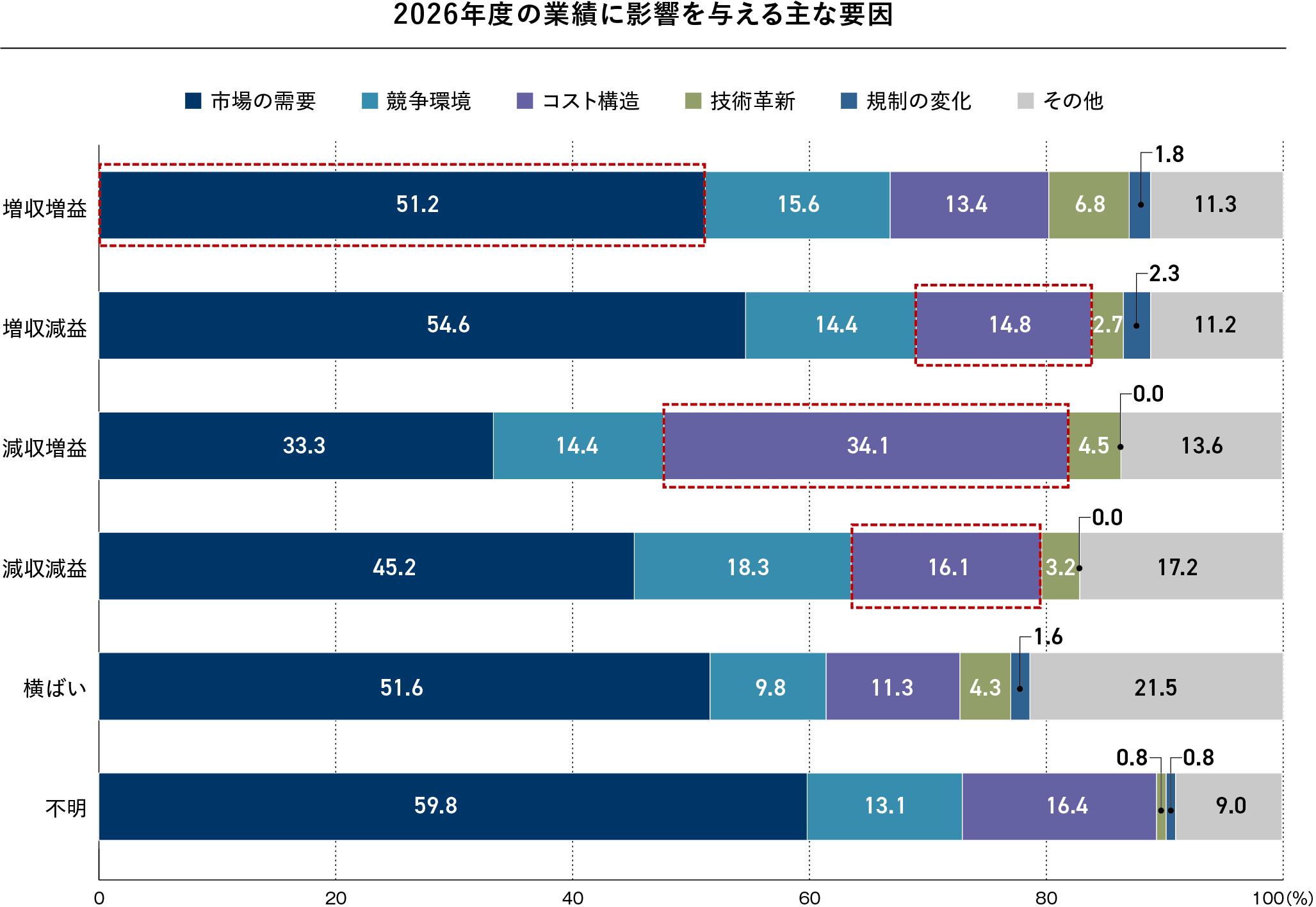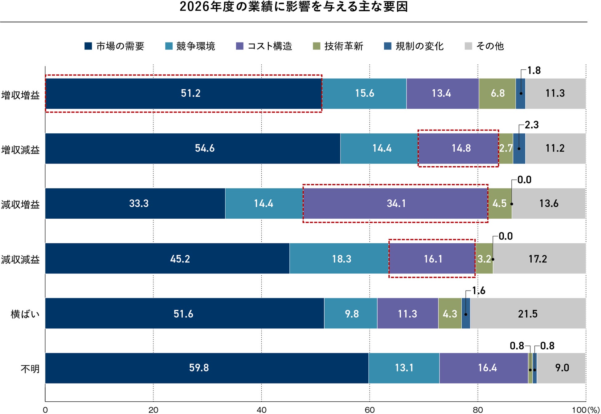 (2)2026年度の業績に影響を与える主な要因は「市場の需要」と「コスト構造」が二大要因に