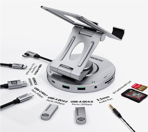 MaxiHub 8-in-1 ラップトップスタンド(360°回転ベース付き)