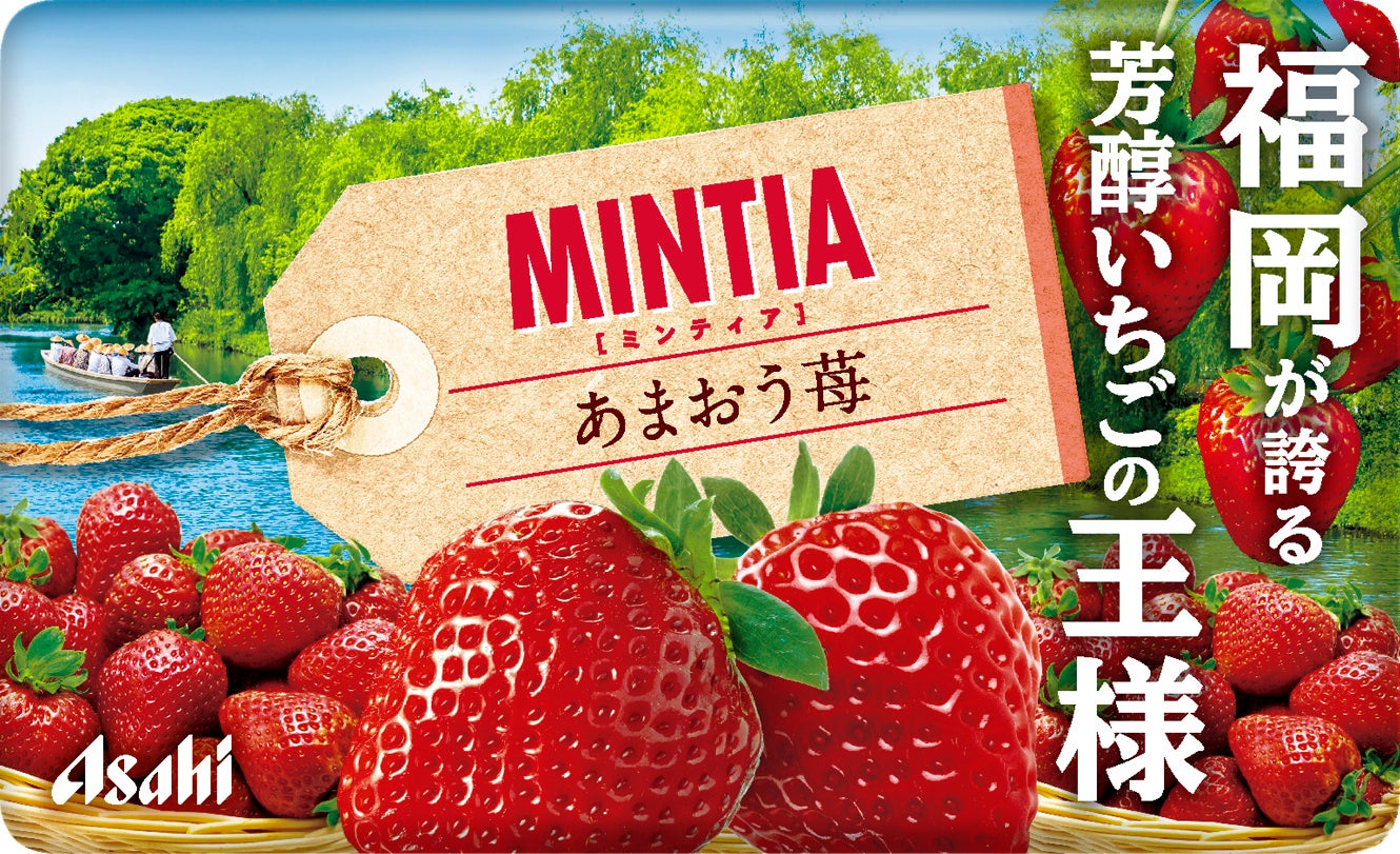 『ミンティア あまおう苺』は、福岡県産のあまおう果汁を使用しており、甘味と酸味のバランスが良く、濃厚でジューシーな苺の芳醇な味わいが楽しめます