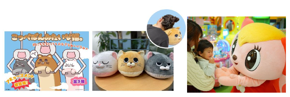 画像左:イオンファンタジー主催「モーリーオンライン × いちあっぷ プライズ化コンテスト」で商品化されたキャラクター「こっぺぱんみたいな猫。」