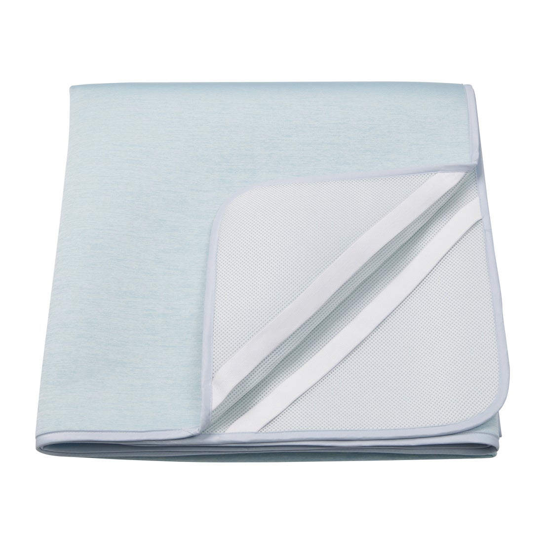 ブルーのナイロンの布地は接触冷感効果があり、通気性に優れているため、さらっと快適な寝心地です。裏地は、優れた通気性と空気の循環を可能にするリサイクルポリエステル100%のメッシュ生地を使用しています。マットレスをシミや汚れから守り、長持ちさせることもサステナビリティにつながります。