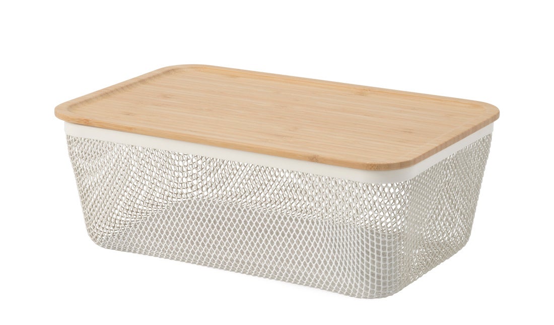 常温で風通しのよい場所に保存したいフルーツや野菜などの食品を入れるための実用的な食品保存バスケット。 食品をよりおいしく保存して、廃棄物を減らしましょう。ふたで使用されている竹は再生可能・リサイクル可能で、耐久性にも優れています。また、強度があるため、構造的な要素や板に使用する場合に薄くできるので、1製品当たりの使用量がほかの素材に比べて少なくて済みます。そのため、天然資源を節約でき、輸送コストも削減できます。