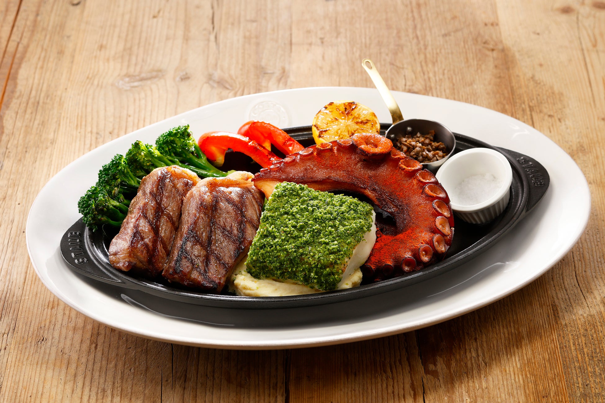 ※サーフ&ターフとは…海を意味する「SURF」と、大地を意味する「TURF」を組み合わせた言葉、魚介類と肉類の料理を1皿に盛り合わせた料理のこと。