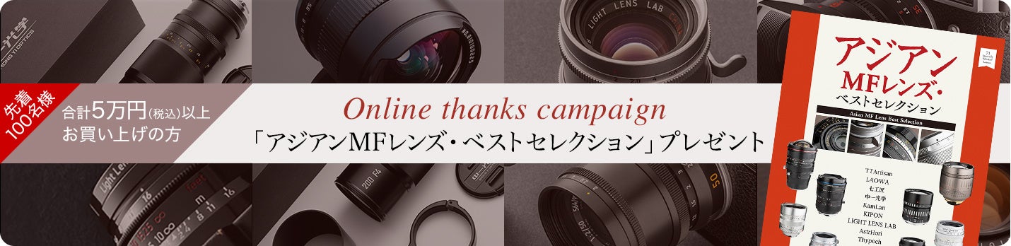 日頃のご愛顧に心から感謝を込めて、焦点工房オンラインストアでは特別なキャンペーンを実施中です。税込5万円以上お買い上げのお客様(先着100名)に、玄光社発刊の「アジアンMFレンズ・ベストセレクション」をプレゼントいたします。