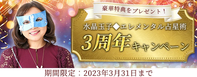 株式会社レンサ(本社:東京都渋谷区、代表取締役:武井哲也)は、2023年2月24日(金)より、運営する公式占いサイト「水晶玉子◆エレメンタル占星術」にて『3周年キャンペーン』の提供を開始いたしました。