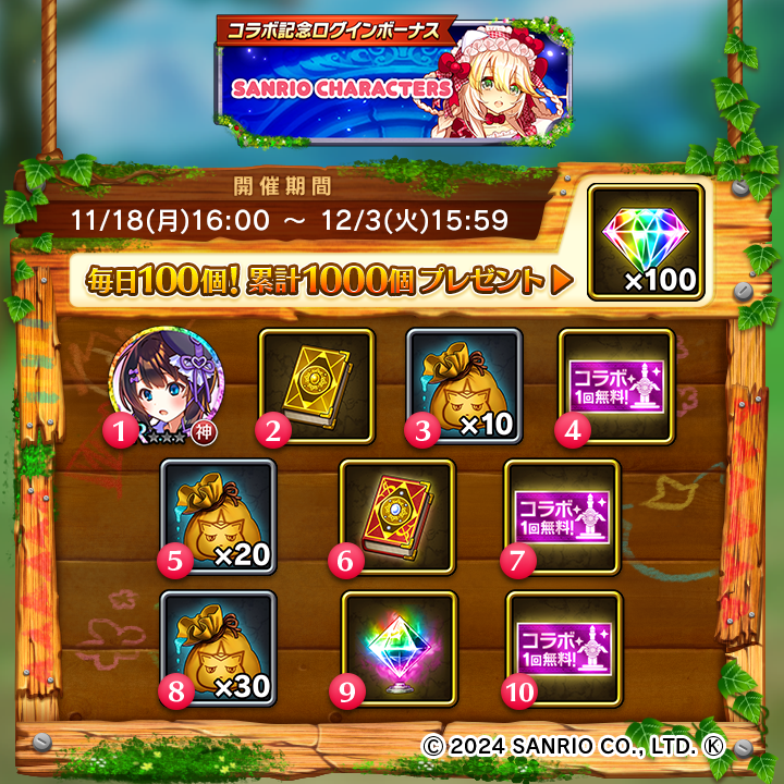 期間中にアプリにログインすることでコラボガチャチケットなど、豪華アイテムが獲得できるログインボーナスを開催いたします。