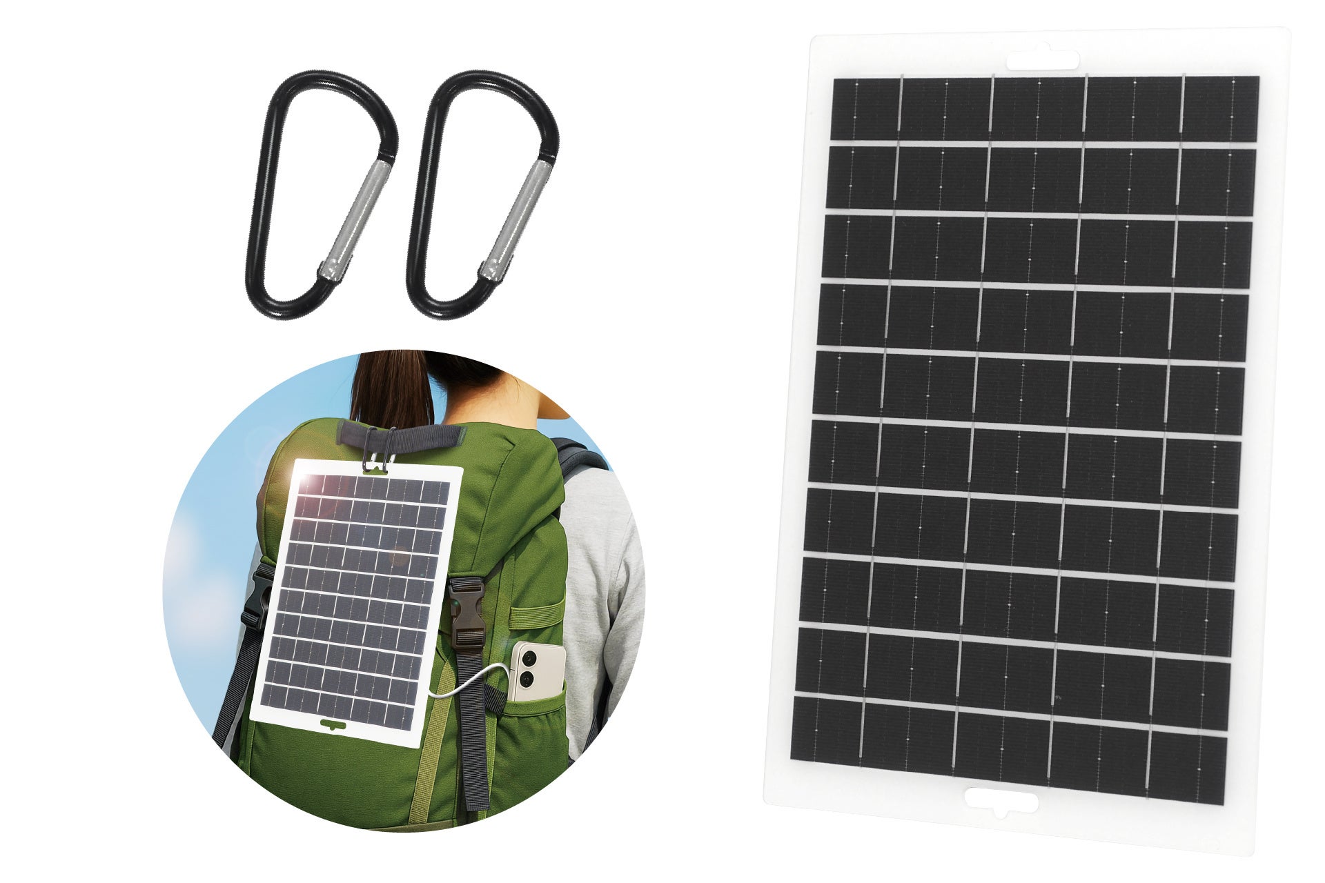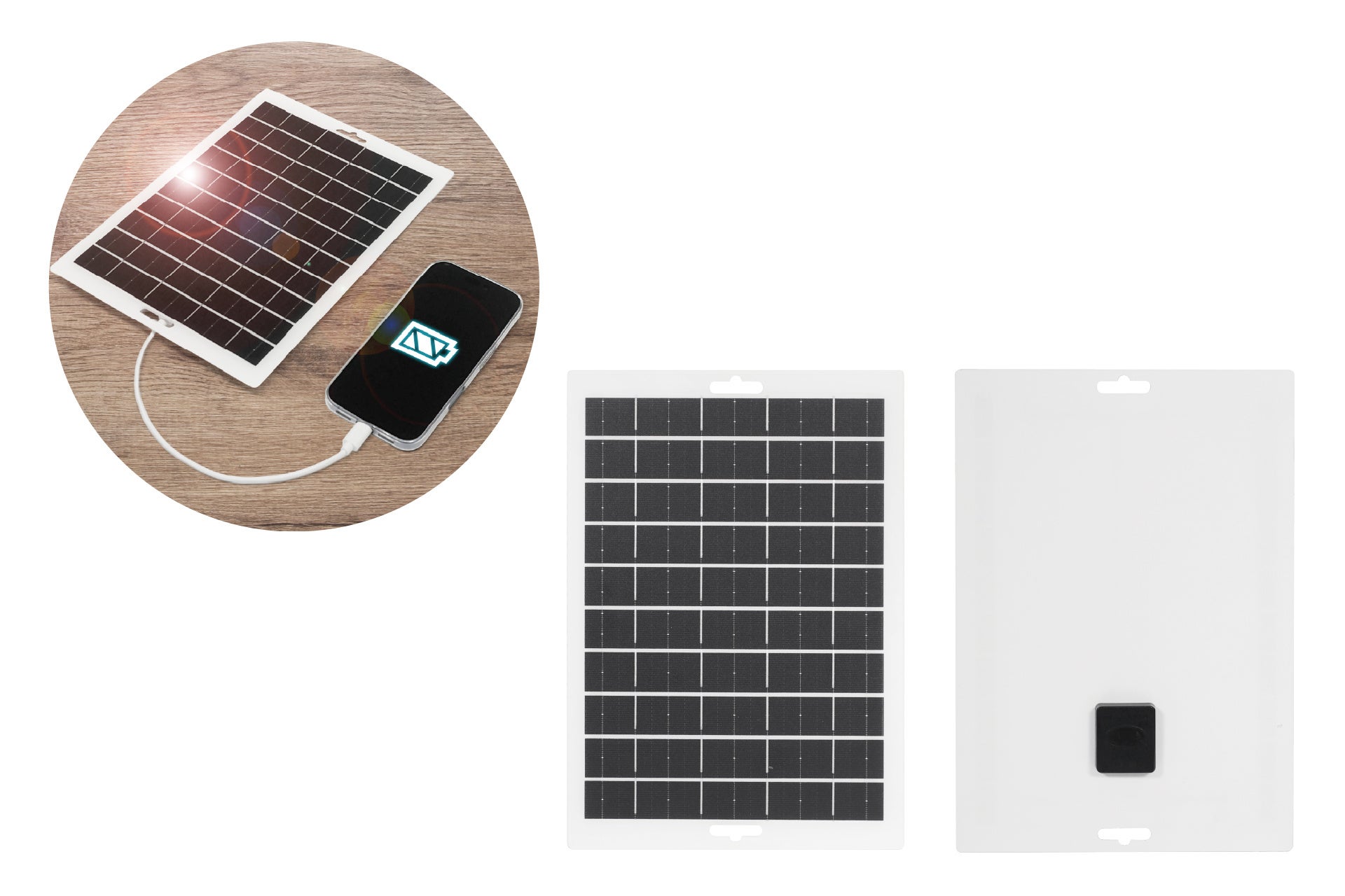 特徴:厚さ2.5mmの超薄型ソーラーパネルが登場!最大8W出力が可能。3時間でiPhone15を約78%充電できます。重量125gで軽量&カラビナ2個付きで、リュックなどにぶら下げての使用がおすすめ。薄型&軽量ソーラーパネルで防災対策を始めよう!