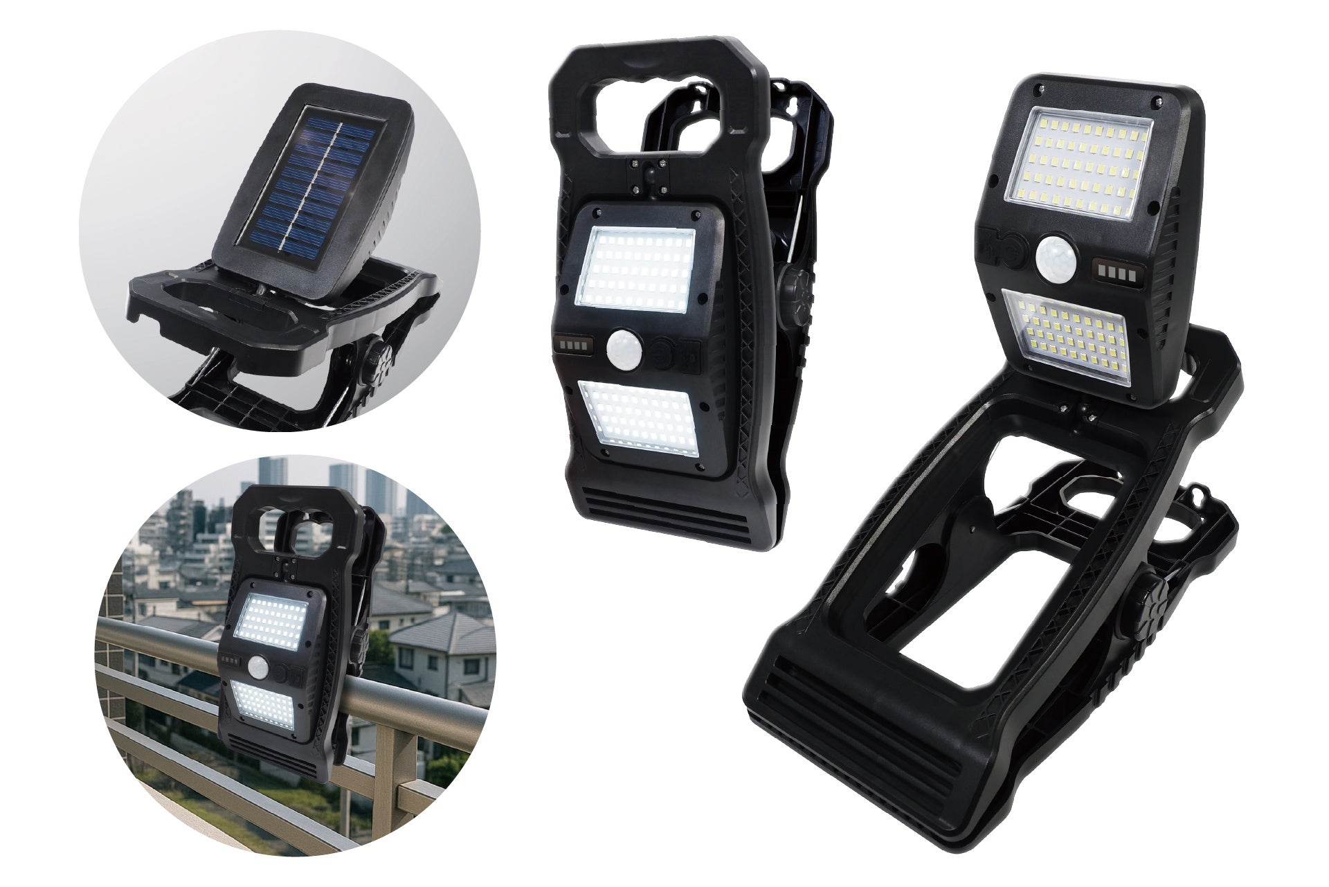 特徴:USB充電とソーラーの2通りの充電ができるクリップタイプのセンサーライト登場!暗闇でセンサーが反応して、パッと自動点灯!クリップで挟んだり、置き型にもできるのでベランダや車、アウトドアにとっても便利!ライト部分は360°回転できます。最大約250lmの明るさで周囲を明るく照らし、選べる3つの点灯モードを搭載。