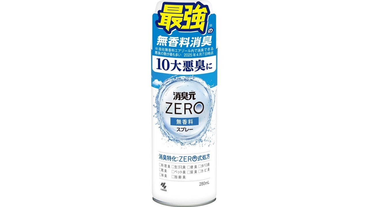 製品特徴:「ZERO式処方」を採用し、お部屋やトイレに漂う10大悪臭を無香料で瞬間消臭できるスプレー消臭剤。