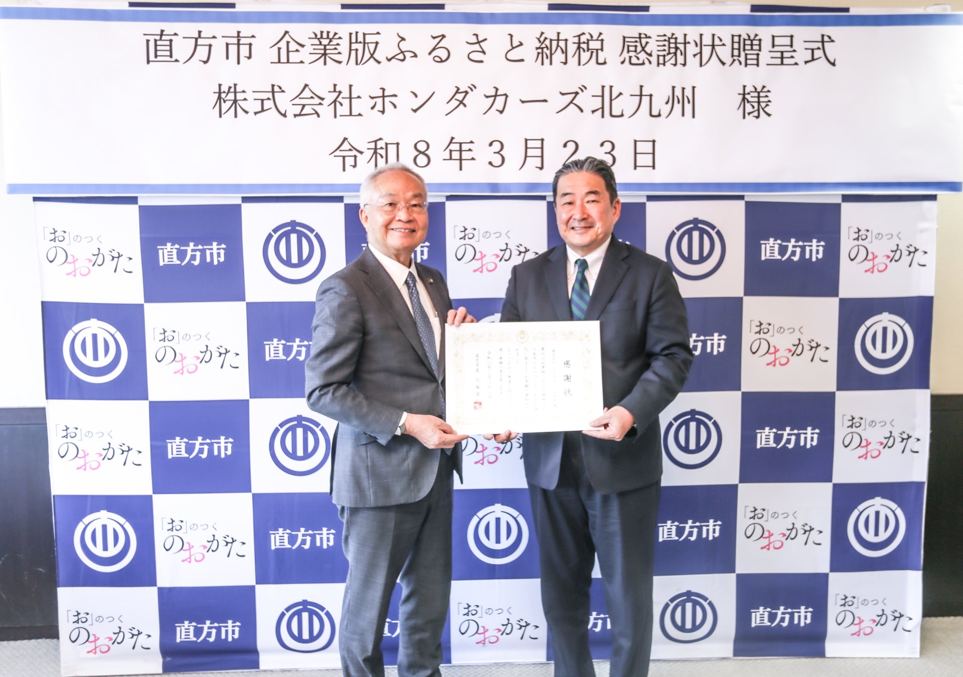 【直方市】株式会社ホンダカーズ北九州様より、企業版ふるさと納税をご寄附いただきました!