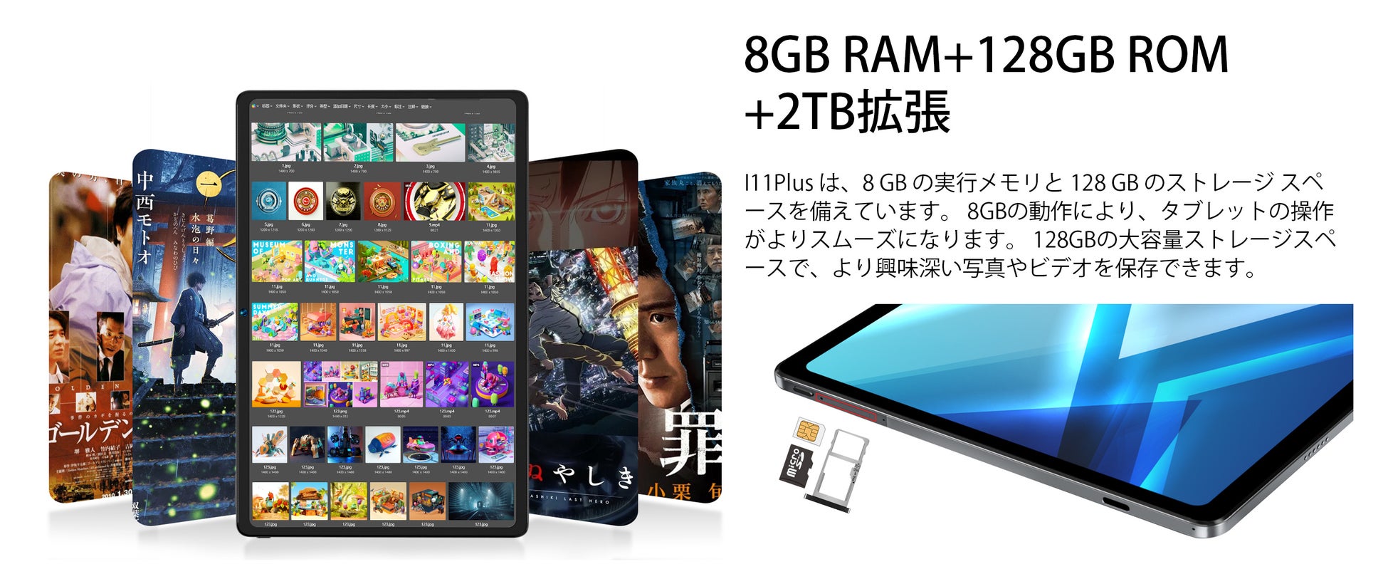 【8GBのランニングメモリと128GBの高速ストレージを搭載】ストレージに拡張可能なMicroSDをサポートしています。メモリ容量が大きいとタブレットはサクサク動くようになります。Webサイトや動画を見たり、重いアプリや高画質のゲームを楽しみいただきます。お気に入りの本、曲、写真、映画、ゲームなど、好きなものをすべてダウンロードして保存できます。容量不足に困ることなく十分にお楽しみいただきます。6600mAhの大容量バッテリーとAIインテリジェント電源管理により、7時間の映画・読書・ブラウジングを楽しむことができます。