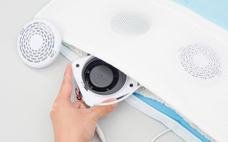 5つのファンで背中のムレを解消!寝苦しい夜も涼しく快適に入眠できる、ファン搭載マット