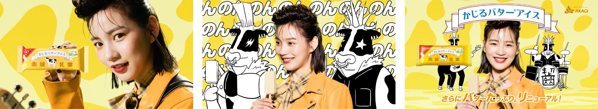 CMでは、「のんかじバタかじるのん」の激しいロックに合わせて、アイスを食べ進める「のん」さんの表情の変化にご注目!皆さんもリニューアルした「かじるバターアイス」を食べて、「のん」さんと一緒に濃厚バターにドハマる体験をしてみませんか?