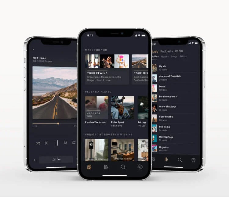 Pi5 S2は、Bowers & Wilkins Musicアプリと完全に統合された最新のヘッドフォンです。セットアップ、接続器の管理、ノイズキャンセリング・モードの切り替え、装着センサーの設定など、シームレスなユーザー体験を提供するMusicアプリは、Deezerなどのサブスクリプション・サービスを通じて、モバイル機器からイヤフォンに直接高品位な音楽をストリーミングする機能もサポートしています。