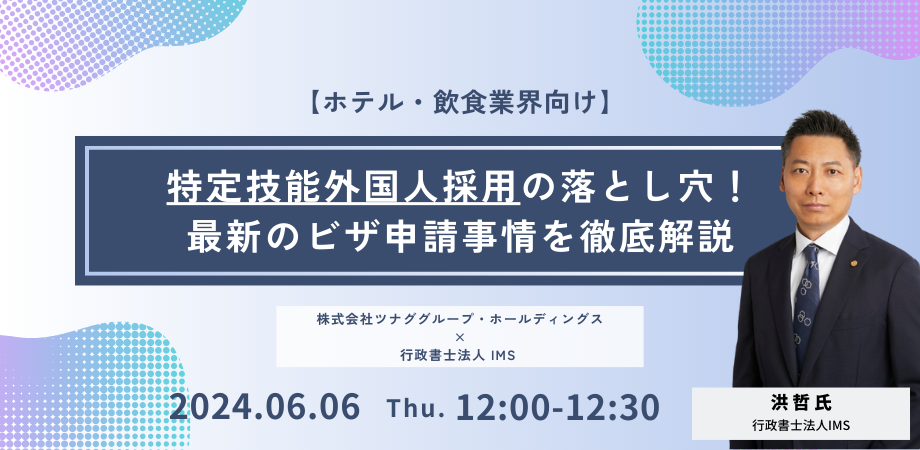 【ウェビナー】<ホテル・飲食業界向け>特定技能外国人採用の落とし穴!最新のビザ申請事情を徹底解説