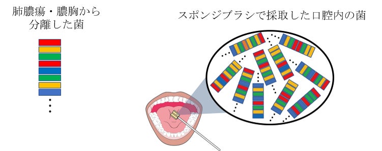 口腔内には無数の菌がいますが、その中に肺膿瘍や膿胸から検出した菌と遺伝子が全く一致する菌が存在するか否かを調べることは今まで困難でした。このため私たちは新しい方法を開発する必要がありました(下図)。この方法については専門的になりますが詳細は論文を参照ください。