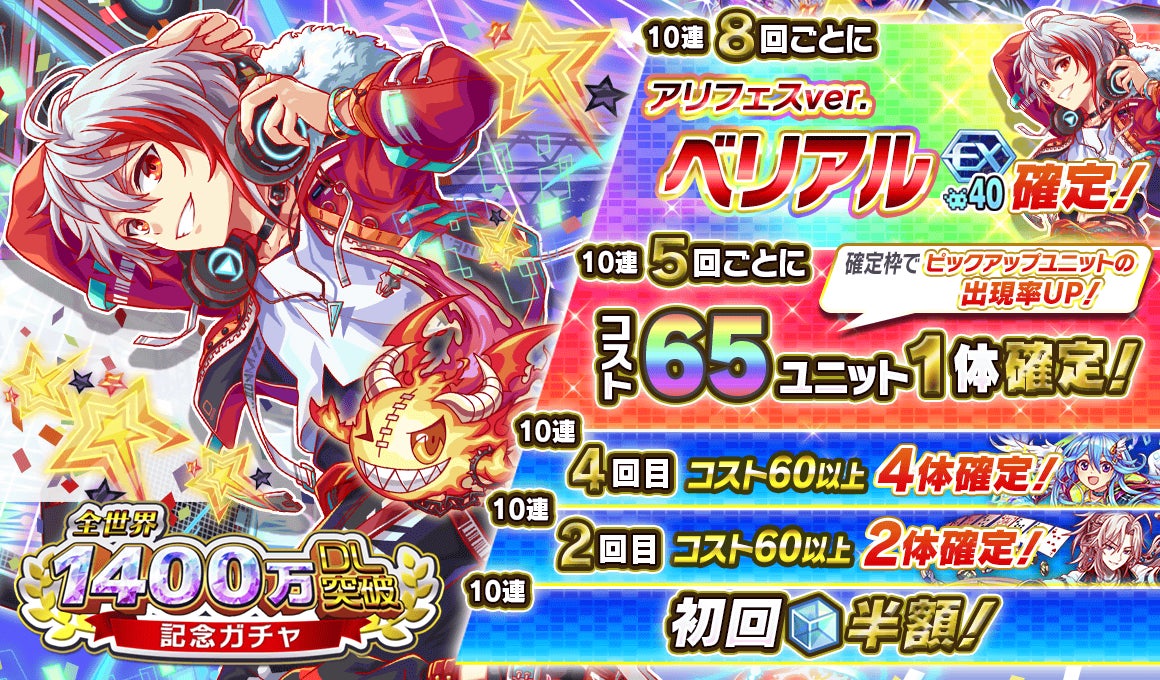 1400万DL記念ガチャではアリフェスver.の『ベリアル』が登場!