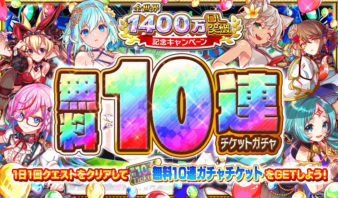 さらにミッションクリアの報酬でも『1400万DL記念10連ガチャチケット』をプレゼント!
