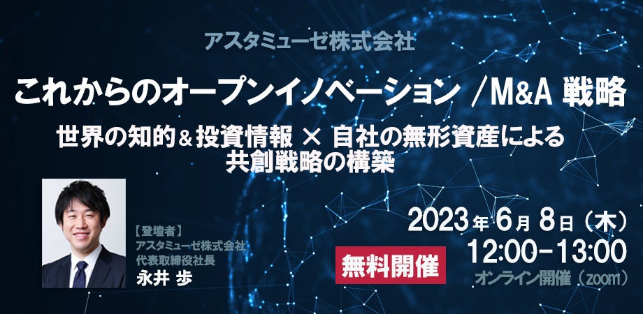 事業企画・経営企画部門向けの無料ウェビナー「これからのオープンイノベーション / M&A戦略 ~世界の知的&投資情報×自社の無形資産による共創戦略の構築~」を再開催
