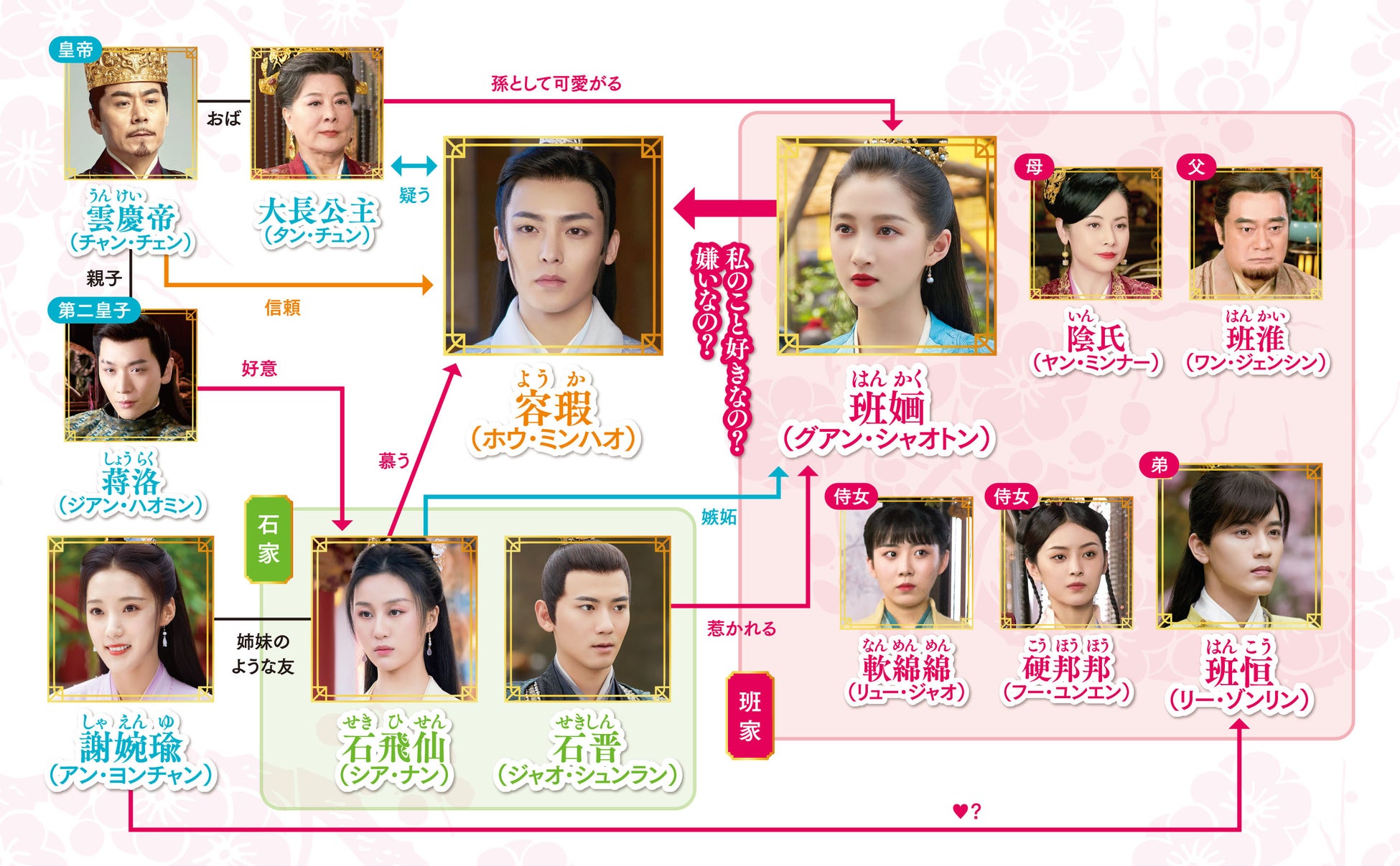 子役時代から活躍し、“国民的美少女”として高い人気を誇る若手スターのグアン・シャオトンが、武術に長け正義感の強い型破りなお嬢様を等身大で好演! 何不自由なく暮らす姫・班婳(はんかく)は、ある日家族が不幸に見舞われる予知夢を見る。悲劇を回避するため自ら行動に移すその姿は豪快で、まっすぐに突き進む戦士のような姿に、女性視聴者から絶大な支持を獲得! 曲がったことが大嫌いで、皇帝や高官など誰に対しても物怖じせず発言する様は痛快! ライバルであっても冤罪と分かれば無実の証拠を探し出し、自身が間違っていた時には潔く謝る強さも持つ。次第に宮廷の覇権争いに巻き込まれていく中で垣間見せる“弱きを助け強きを挫く”の精神は好感度大! 自分の考え、主張をしっかりと持つヒロインの強さと優しさの魅力にハマり、真っ直ぐに運命を切り開いて生きる姿に共感し惚れること確実!