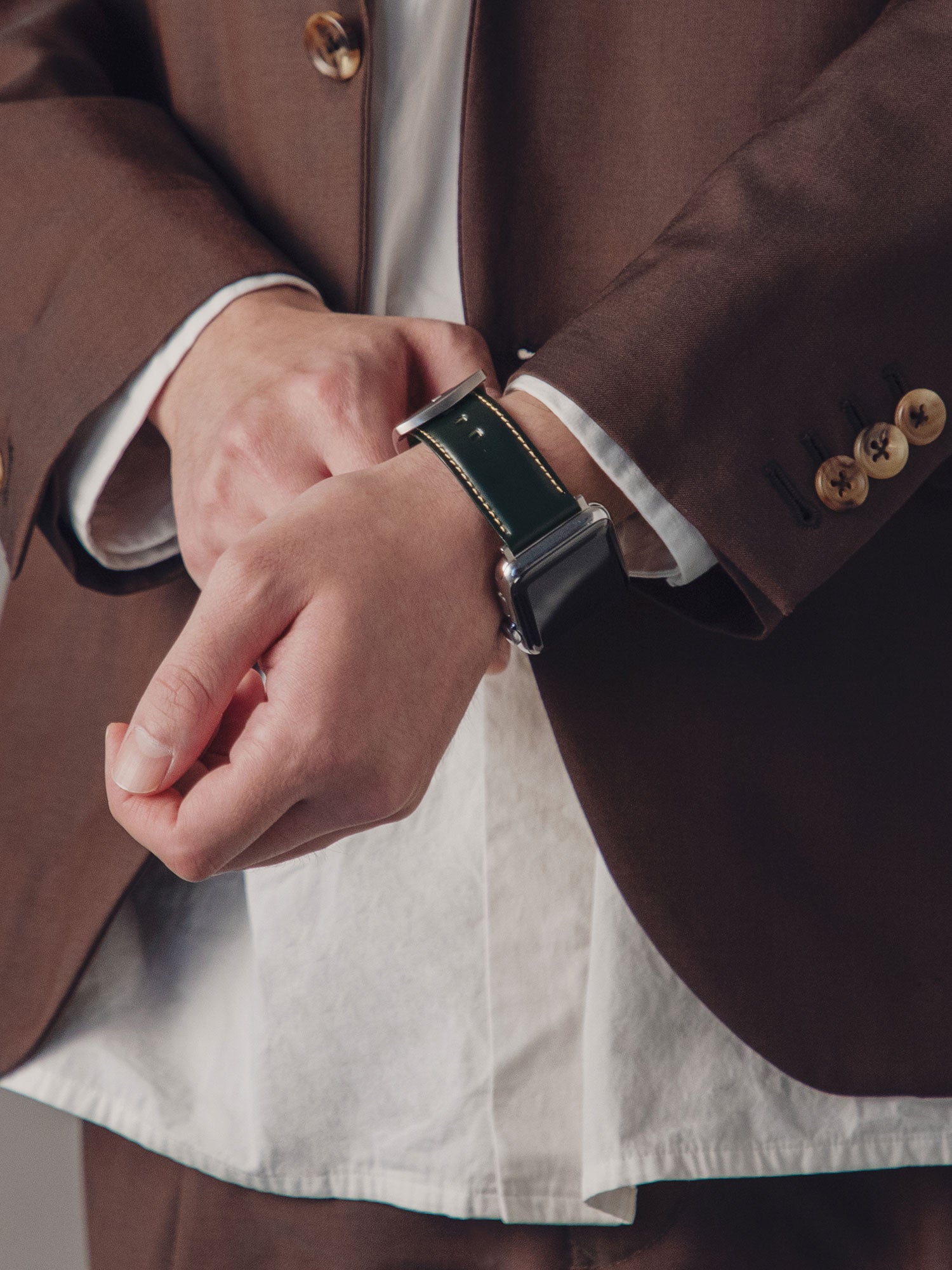 2022年3月の初登場以来、ご好評いただいているレザーウォッチバンド。今回は、ブランドが受け継いできた「上質な素材を大切に使う」という思いから、“革のダイヤモンド”と呼ばれる美しく希少な素材「コードバン」の端材を使用した美しいレザーウォッチバンドが誕生しました。