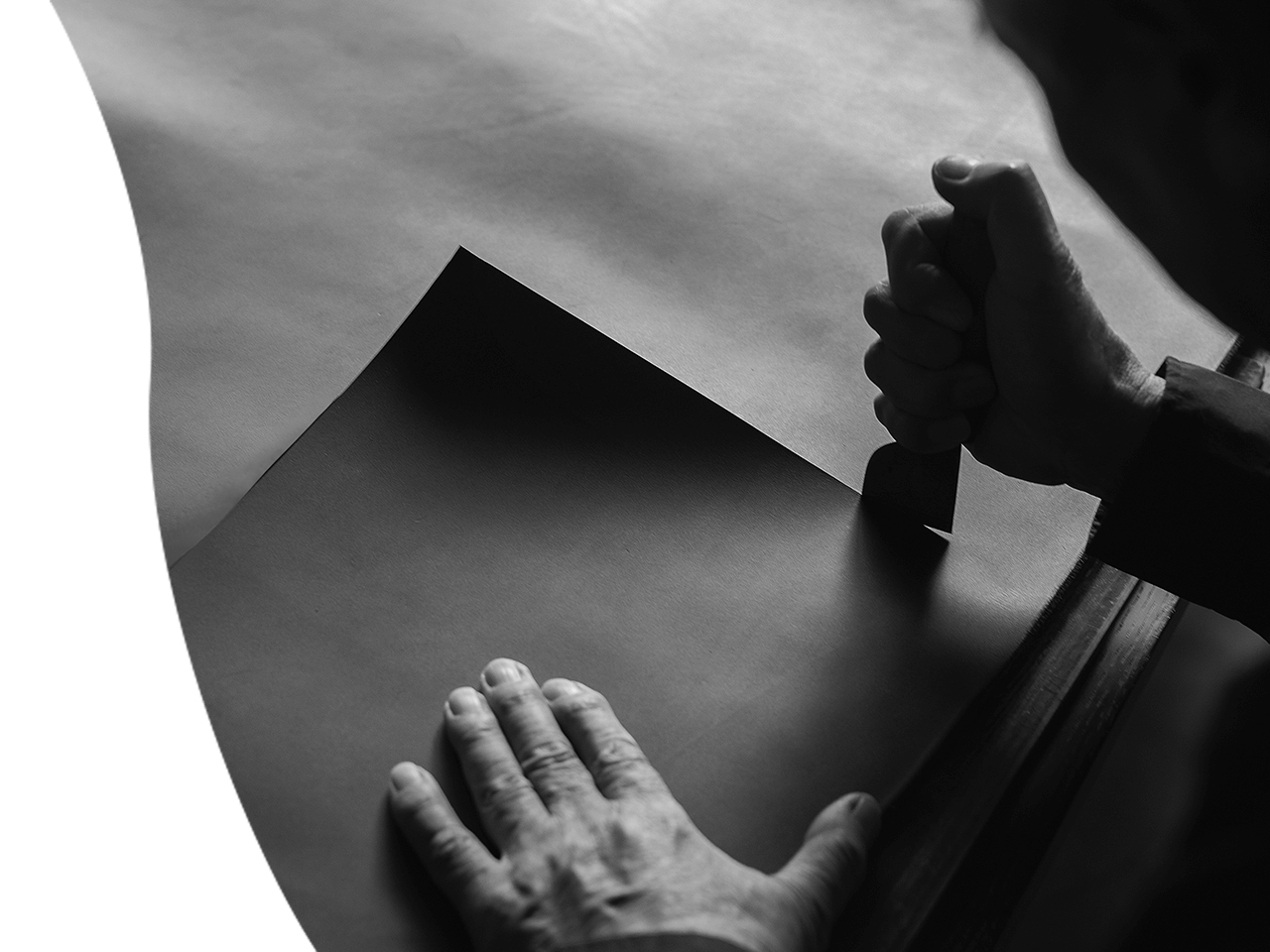 土屋鞄製造所のコードバン製ランドセルでは、本体に被さるフタ部分に馬革である「コードバン」を使用しています。1枚の革から採れるのはそのパーツ1枚分のみで残る部分の形状も一定しないため、他の製品に活かすことはできませんでした。しかし、希少で上質な素材である「コードバン」を無駄にせず、お客さまのためのものづくりに役立てたい——その思いから、抜いた後の革を捨てずにストックしていました。