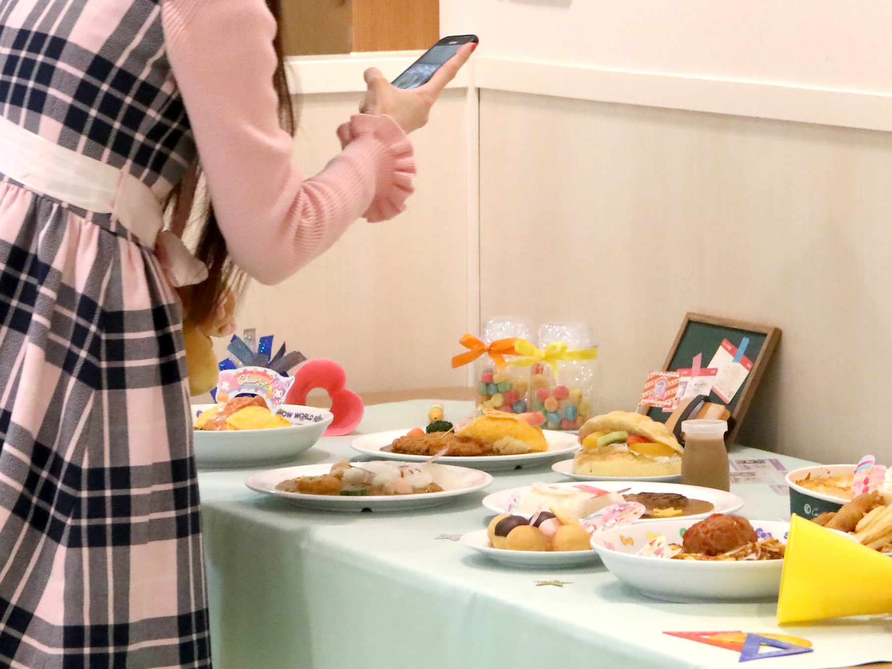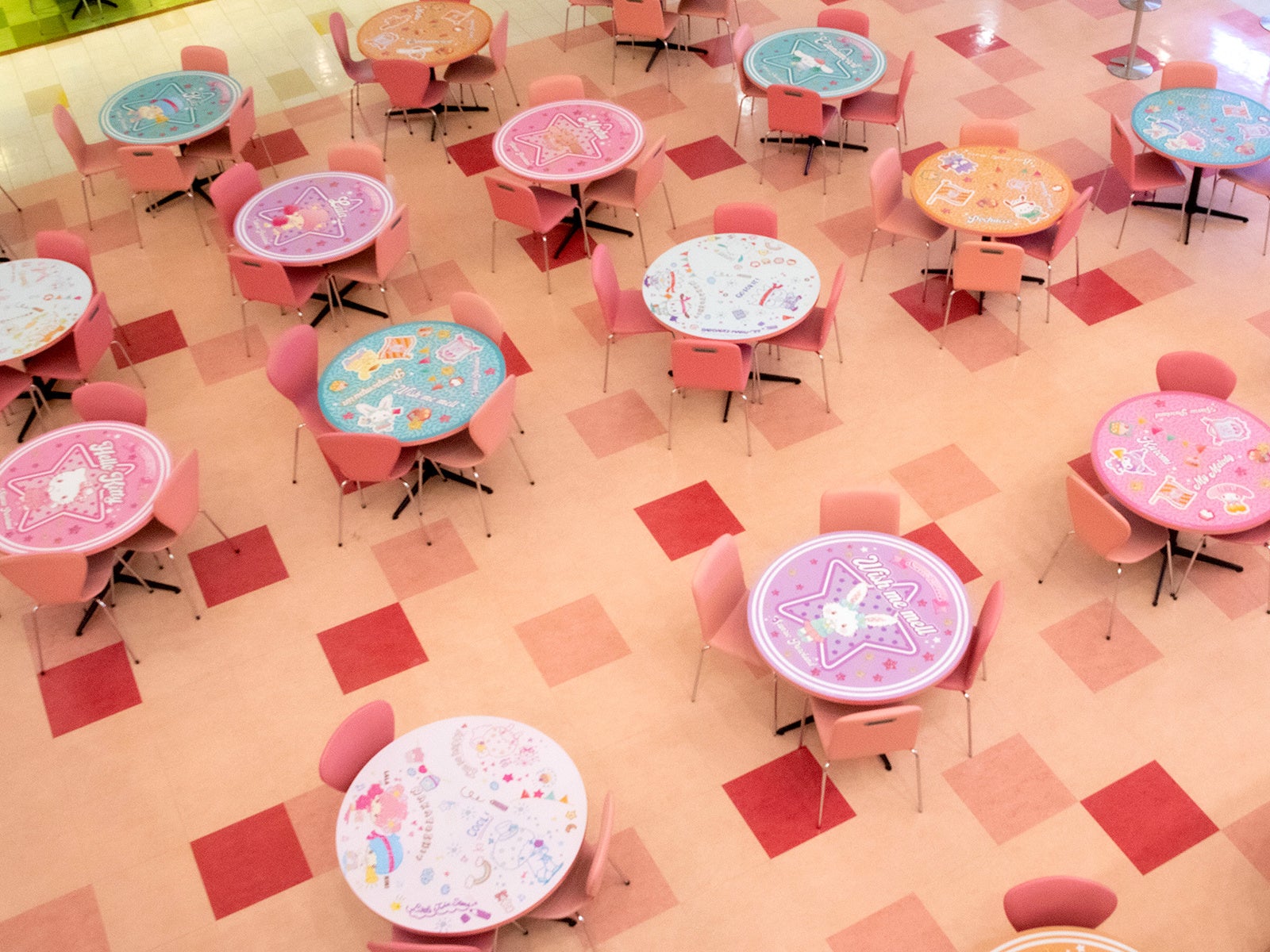 制服姿のハローキティ、ポムポムプリンが登場するだけでなく、今年は新たに教育実習生としてピューロ学園に加わったアグレッシブ烈子も映像出演し、学園の世界観を通じてゲストの皆様にエールを送りました。また、アグレッシブ烈子は体を動かしながら楽しむキッズ向けグリーティング「烈子先生とあそぼう」にも登場し、お子様をはじめとしたゲストの皆様と一緒に盛り上がりました。他にも、星のモチーフなど元気が出るようなフォトスポットや装飾、期間限定のオリジナルグッズの展示やフードメニューが登場し、写真撮影を楽しむ客様や、お食事を楽しむお客様の姿が見られました。