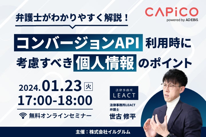 イルグルム、弁護士による個人情報に関する無料オンラインセミナーを1/23(火)開催。コンバージョンAPI利用時に考慮すべき個人情報のポイントをわかりやすく解説