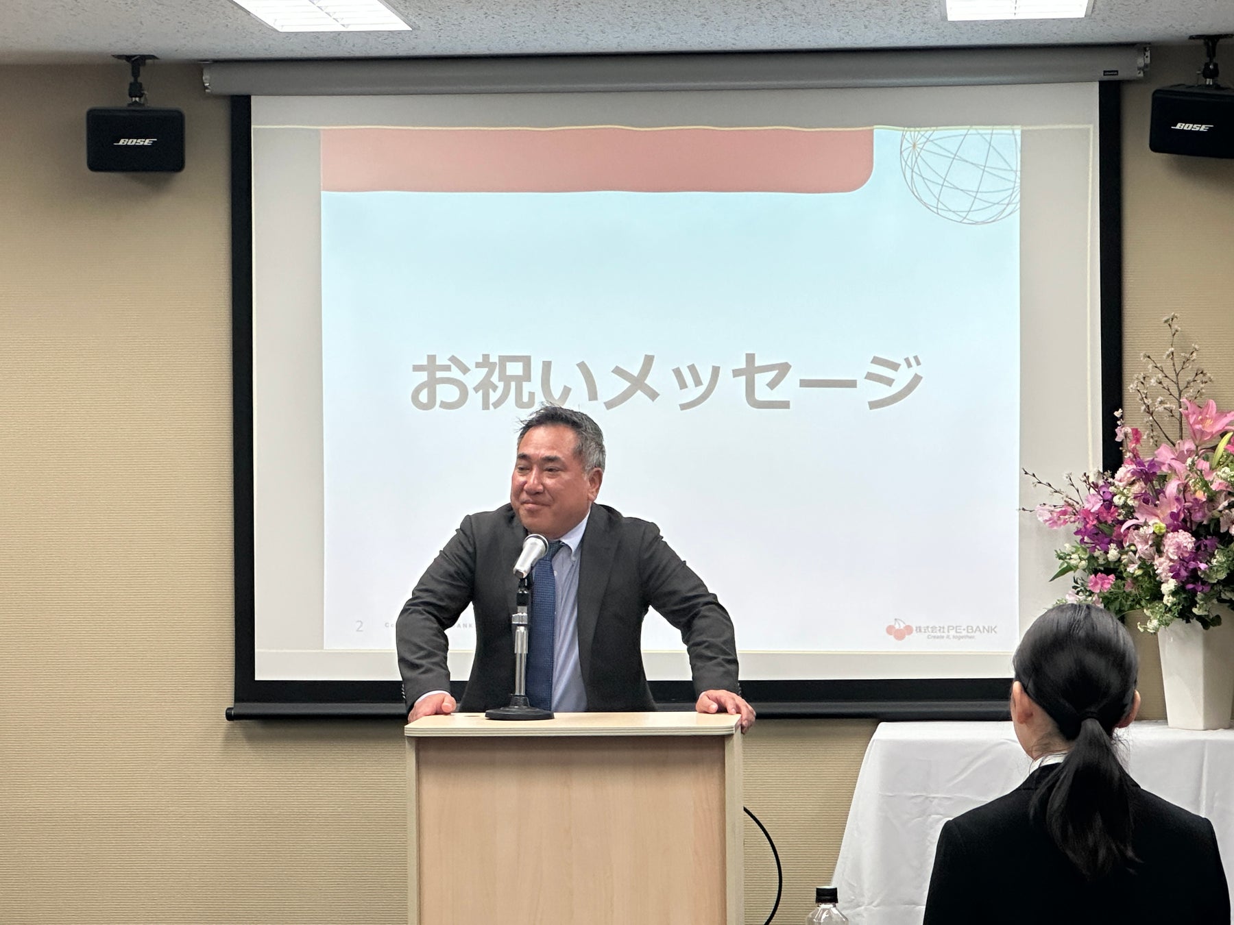 「皆さん、入社おめでとうございます。PE-BANKへようこそ!皆さんが入社してくれたことを、とても嬉しく思っています。