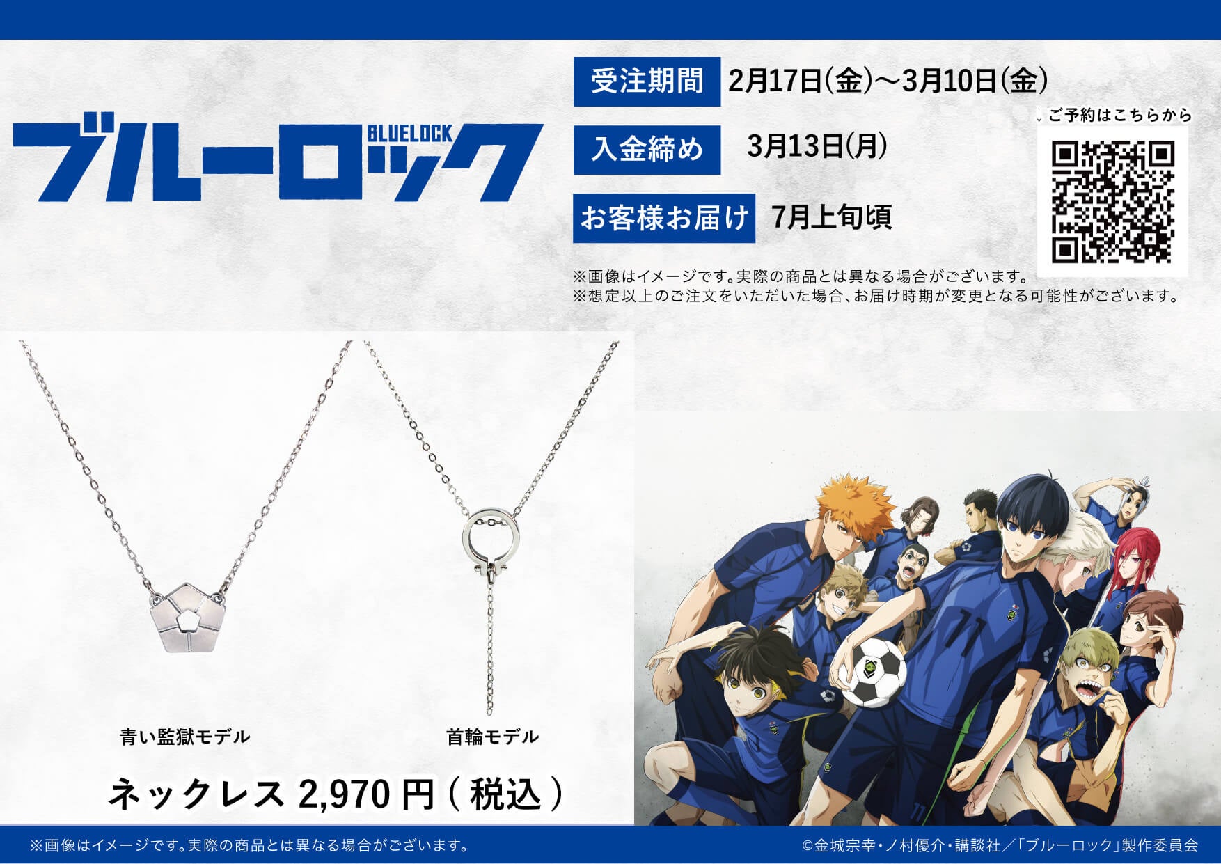 TVアニメ『ブルーロック』から2種類のネックレスが登場!“青い監獄”の五角形マーク、作中に描かれる首輪&鎖がモチーフ!