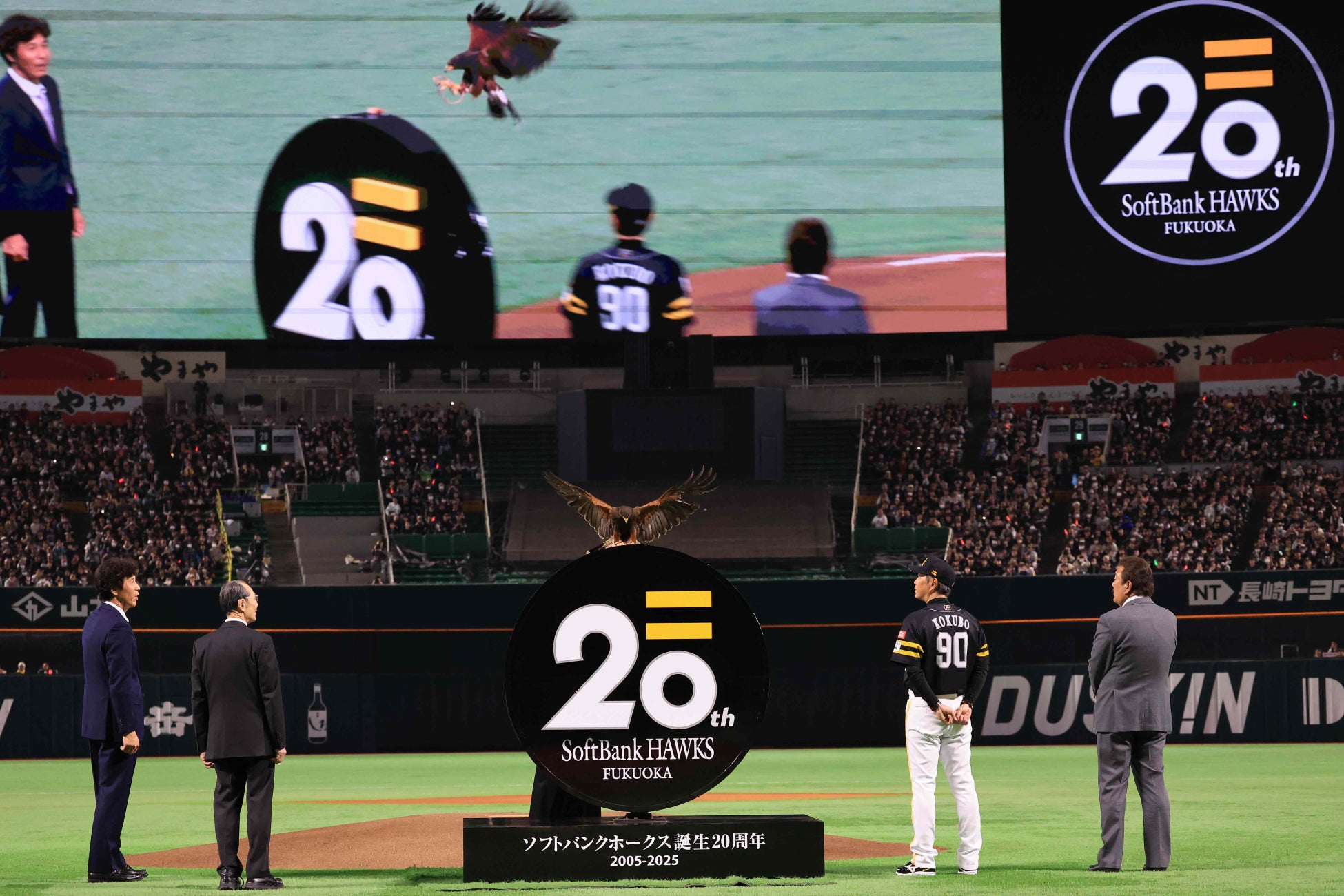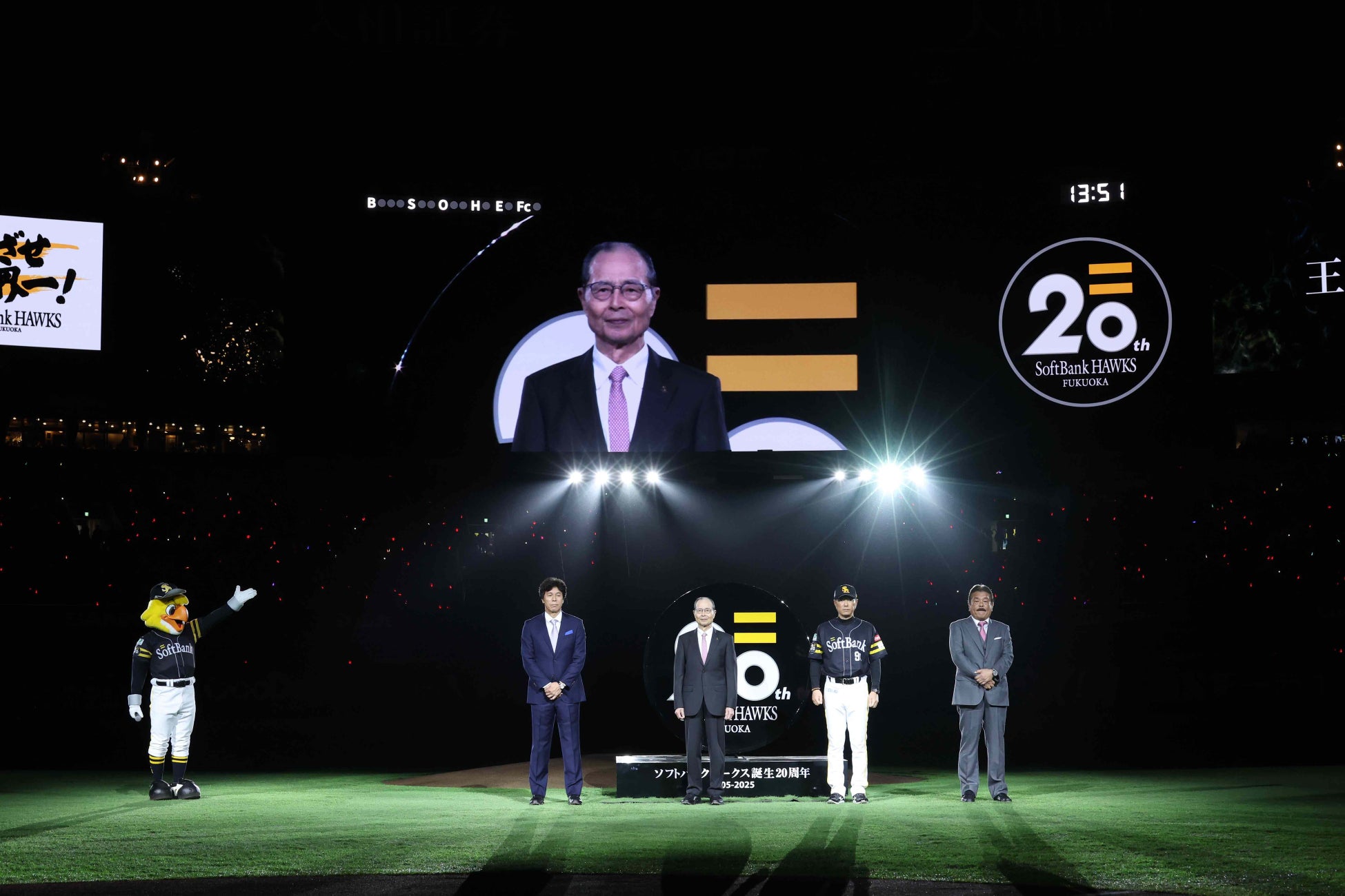 ソフトバンクホークス誕生20周年記念デー試合前セレモニーの様子