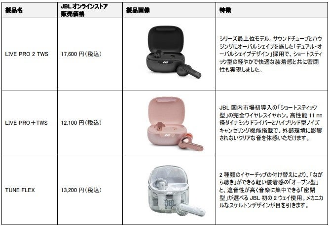 ※すべての製品情報は公式サイト(https://jp.jbl.com/truewirelessearphone)よりご覧ください。